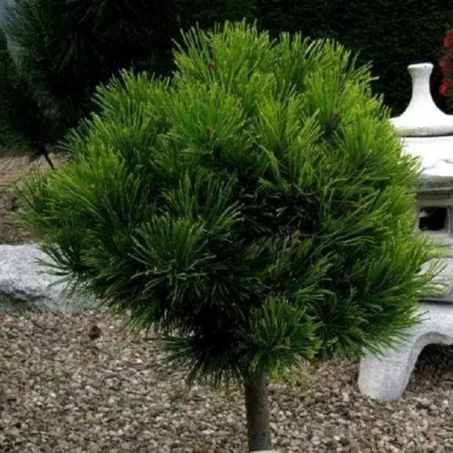 Сосна чорна Бамбіно (Bambino) на штамбі- компактне хвойне ексклюзивне деревце. Повільнозростаючий сорт. Хвоя коротка, красивого темно-зеленого кольору, жорстка, блискуча, в пучках по 2 шт. Рекомендується для різних кольорових композицій з іншими хвойними, для вересових і присадибних садів.