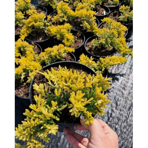 Ялівець горизонтальний 'Мазер Лод' (Juniperus horizontalis 'Mother Lode') - це низькорослий, ґрунтопокривний хвойний чагарник, який характеризується повільним ростом і золотисто-жовтою хвоєю, що взимку набуває бурого відтінку. Він досягає до 20 см у висоту і до 1.2 м у ширину. Цей сорт дуже популярний серед ландшафтних дизайнерів завдяки своїй декоративності та невибагливості до умов вирощування.