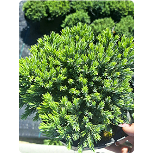 Карликовий, дуже повільно ростучий сорт ялівцю із щільною, незвичайної форми кроною, котра спочатку шаровидна, а потім змінюється на подушковидну. Колір весною синій, восени сталево-голубий. Річний приріст приблизно 3-4 сантиметра.