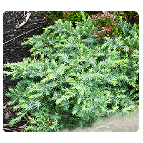 Грунтопокривний чагарник з інтенсивно зеленою хвоєю, росте трохи повільніше, ніж інші види. Після 10 років вирощування він виростає до 0,3 - 0,4 м у висоту та 1,5 м у ширину. Довгі, жорсткі пагони, широко розпростерті лежать на землі, утворюючи зелений килим.