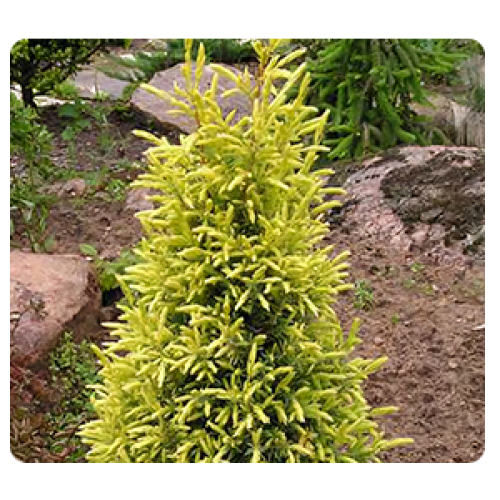 Це дуже щільний, симетрично-циліндричної форми сорт, що не вимагає корегуючої стрижки. У молодому віці має яйцеподібну форму крони. Забарвлення золотистого кольор