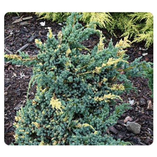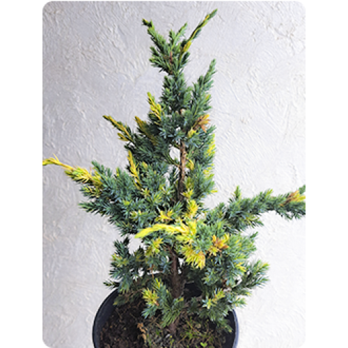 Вічнозелений, з декоративною двоколірною хвоєю кущ. Він має розлогу, широку форму крони, висотою в 10 років 1 м і діаметром 1,2 м. Хвоя має забарвлення блакитного кольору з мальовничими нерівномірно розташованими кремовими плямками.