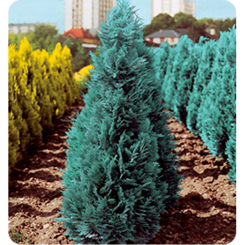 Прямостовбурне дуже декоративне хвойне дерево з вузькою колоновидною кроною. Висота від 5 до 10 м, в 10 років досягає 3-4 м висоти. Щорічний приріст 20 см, зростає швидко. Пагони спрямовані вгору, тугі, тонкі.