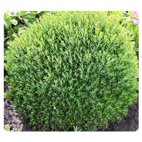 Новий оригінальний карликовий кулястий сорт туї західної з колючою хвоєю. Кущ кулястий, заввишки в 10 років близько 40 см, в дорослому віці заввишки 0,5 - 0,7 м, діаметром 0,4 - 0,5 м. Темп зростання дуже повільний. Пагони тонкі, дуже густо розташовані.