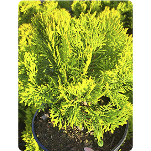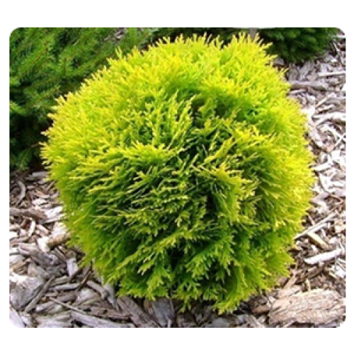 Куляста туя яскравою жовто-зеленого кольору, з вертикально розташованою хвоєю, яка змінює забарвлення на бронзовий взимку, а навесні знову стає соковито-зеленою з жовтими відтінками. Сорт виведений з Danica, перейнявши від неї кращі декоративні властивості. Крона симетрично куляста. Висота і діаметр не більше 0,8 м.