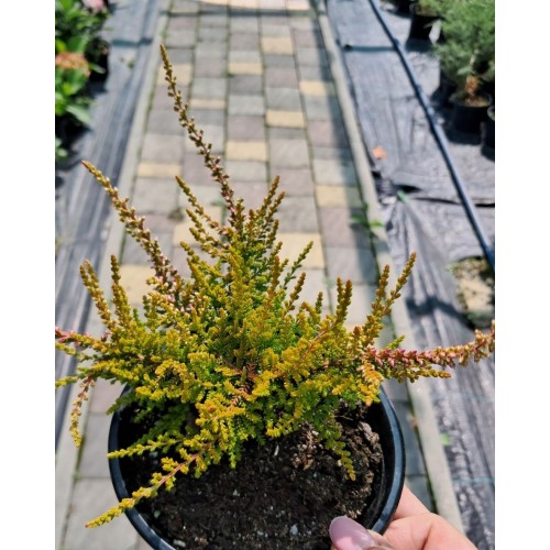 Верес Sea star- повільнозростаючий чагарник, висотою до 25-35 см. Листя яскраво-жовте. Цвіте яскраво-червоними квітками з вересня по грудень.