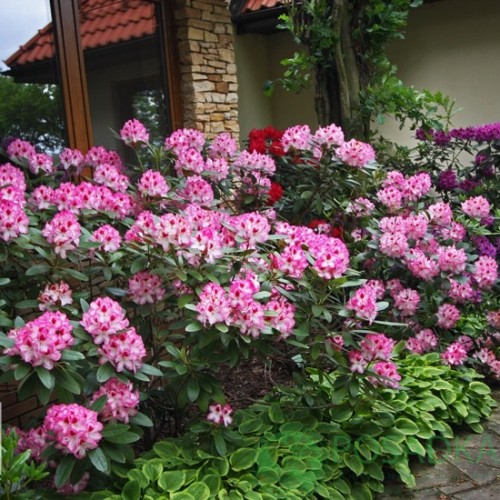 Рододендрон Hachmann`s Charmant рясно-квітучий вічнозелений рододендрон відноситься до гібридних сортів. Чагарник із середньою силою зростання, виростає до 1 м заввишки, крона щільна, округла, широка, досягає діаметром 1.5 м.