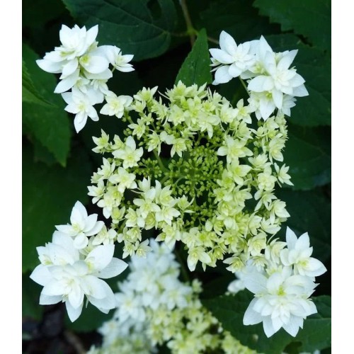 Махрова гортензія Хайєс Старберст це деревоподібний сорт штучного походження, який характеризується махровими квіточками, які збираються в великі зонтикоподібні суцвіття. Кущ заввишки 1,0-1,2 м з розлогою кроною. Гілки тонкі, витончені. Листя яскраво-зелене, злегка бархатисте, з пилчастим краєм.