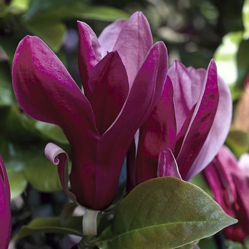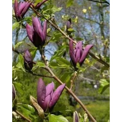 Це фантастична квітуча магнолія пізньої весни з приголомшливими, майже чорними, схожими на тюльпани квітами, і одна з найтемніших з усіх доступних на будь-якій магнолії! Майже чорні квіти насправді дуже темно-фіолетові з крейдово-білими інтер'єрами, що контрастують.