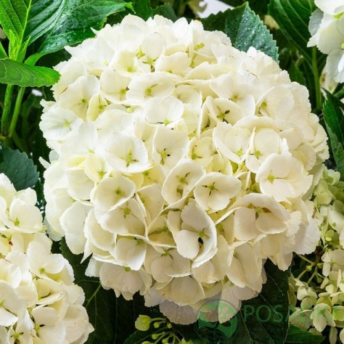 Гортензія Soeur Thérèse (Соер Терез) - це сорт крупнолистої гортензії, відомий своїми великими білими суцвіттями, які можуть набувати рожевого відтінку ближче до осені. Це декоративний листопадний чагарник з розлогими гілками, вкритими великим темно-зеленим листям.