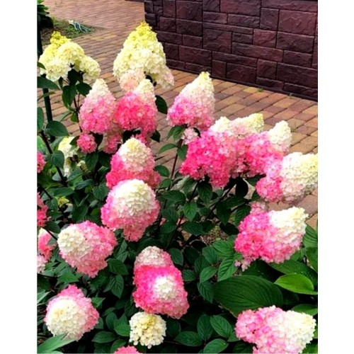 Гортензія волотиста "Сандей Фрайз" (Hydrangea paniculata 'Sundae Fraise') - це компактний, красиво квітучий кущ, що досягає висоти 1-1,5 метра. Суцвіття великі, конічні, спочатку білі, потім рожевіють, а восени стають насичено-рожевими, нагадуючи морозиво. Цвіте з червня до жовтня, вимагає сонячного або напівтінистого місця та родючого, вологого грунту. Добре переносить зиму, але молоді рослини рекомендується укривати на зиму.