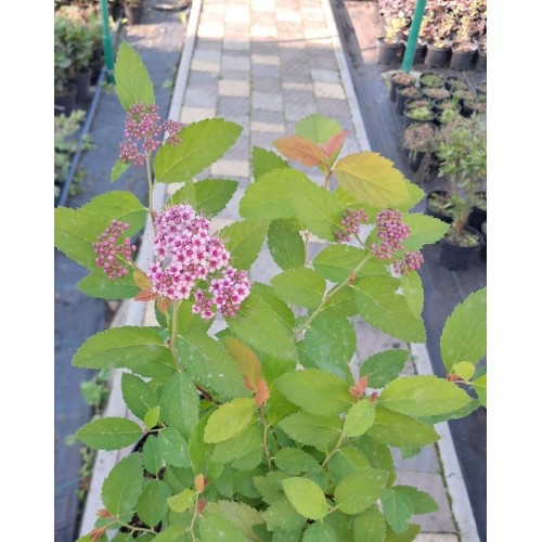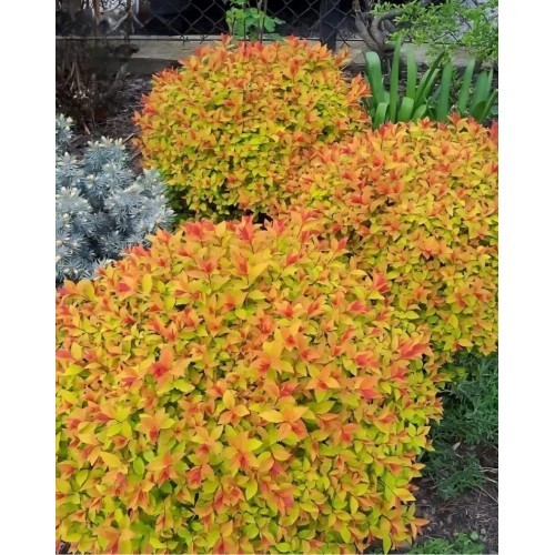 Спірея японська 'Double Play Big Bang', також відома як "Подвійна Гра Великого Вибуху", це декоративний кущ, який характеризується яскравим забарвленням листя та рясним цвітінням. Молоді листочки мають оранжеве забарвлення, яке з часом змінюється на золотисто-жовте, а восени знову стає оранжевим. Квітки рожеві, великі, зібрані в щитки. Кущ компактний, з округлою кроною, ідеальний для бордюрів, живоплотів та контейнерів.